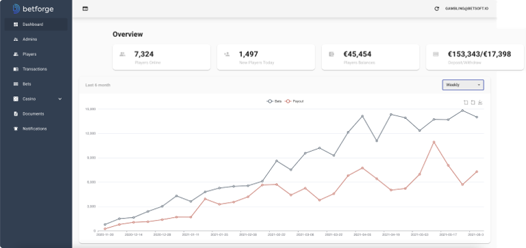 Our product is equipped with detailed analytics that creates the reports over a certain period of time and gives access to watching in real-time such events as the total number of online players and newcomers, the size of the bets, gross gaming revenue, the number of winnings, and others. It helps our clients to make the right business decisions in time to increase gamers’ engagement.